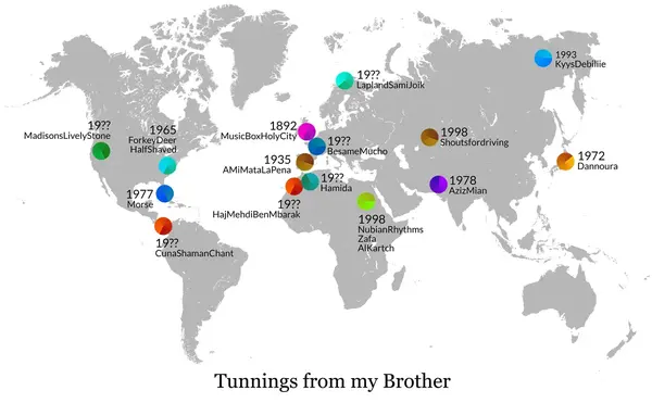 En este mapa puedes ver de donde procede cada canción y su fecha de grabación.