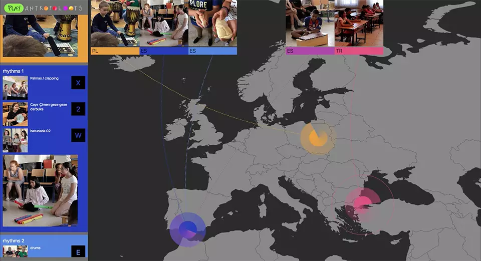 La pieza fue compuesta utilizando fragmentos de grabaciones de sus clases de música. Empezamos a enviar las grabaciones de una escuela a las otras, añadiendo nuevos loops usando play.antropoloops.com. La herramienta de remezcla online permitió a los estudiantes tocar y explorar la pieza en las 3 escuelas al final del curso.