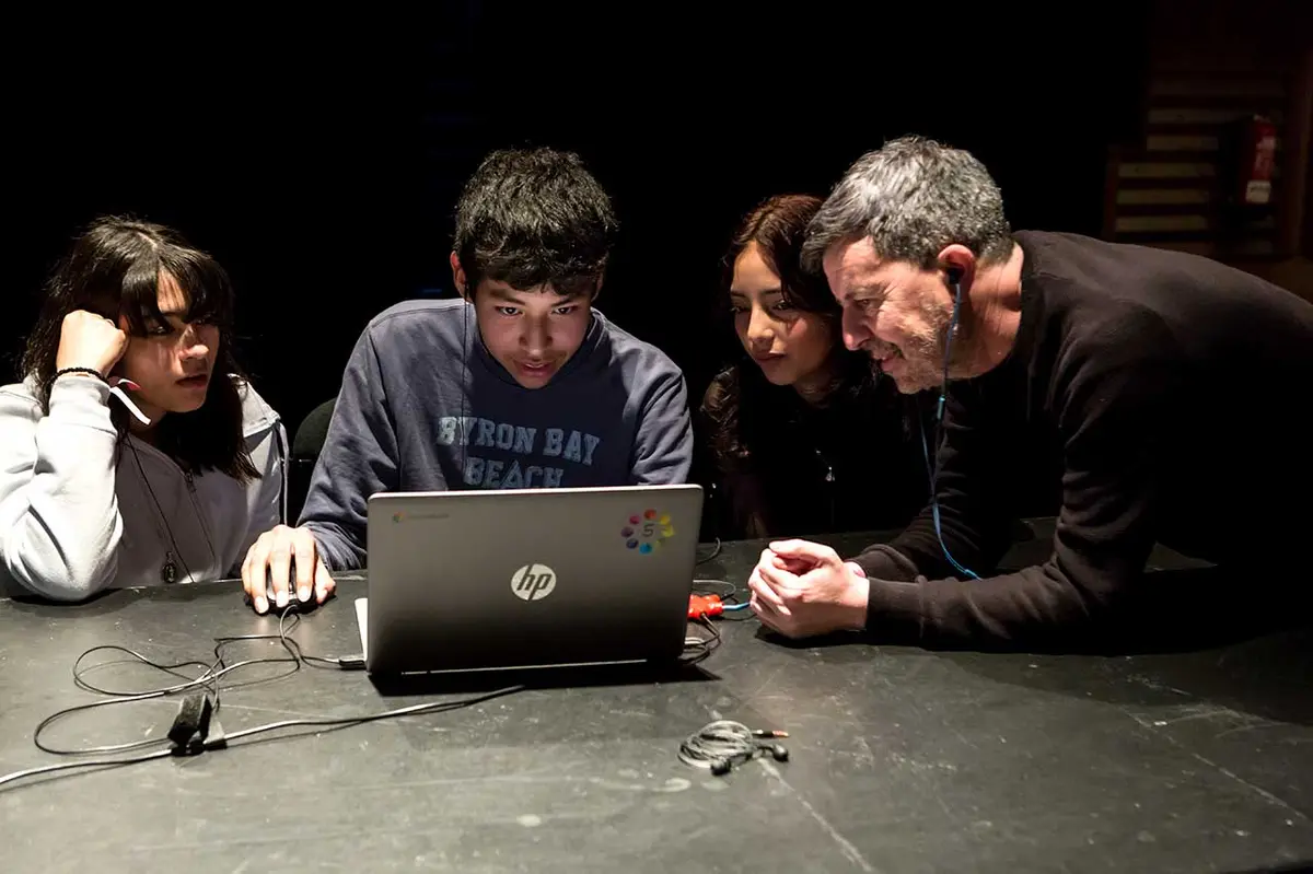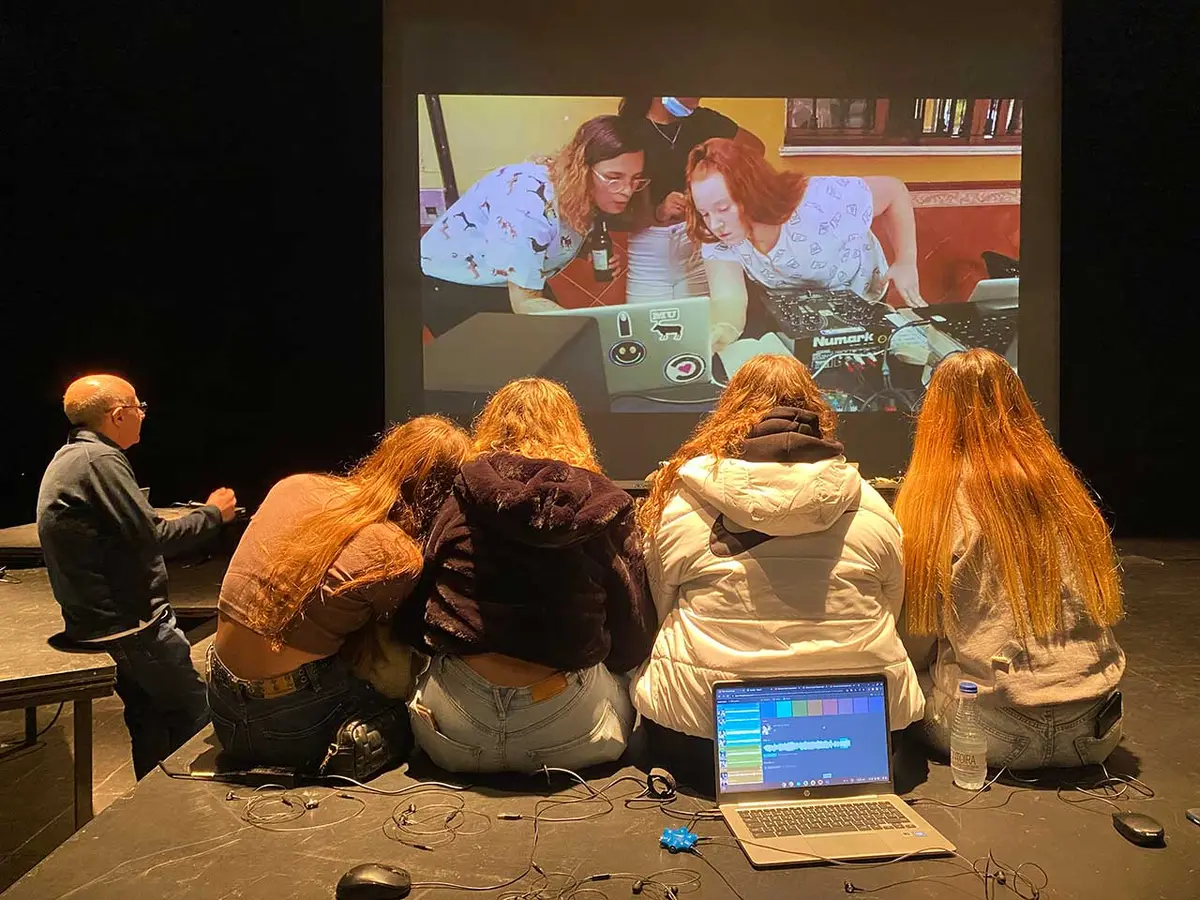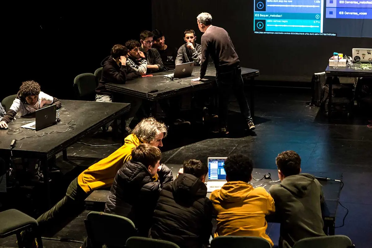 En los talleres de sampleo y remezcla desarrollados en el Teatro Central ha participado alumnado del IES Béquer, IES Cervantes, IES Llanes, IES Macarena, IES San Jerónimo y del IES Martínez Montañes. 185 chavalxs estuvieron aprendiendo a samplear y creando loops a partir de sus canciones significativas.